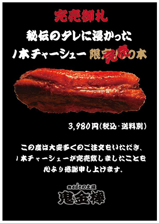 鬼金棒 秘伝のタレに浸かった1本チャーシュー – madeの土産 鬼金棒 (shop-pro.jp)