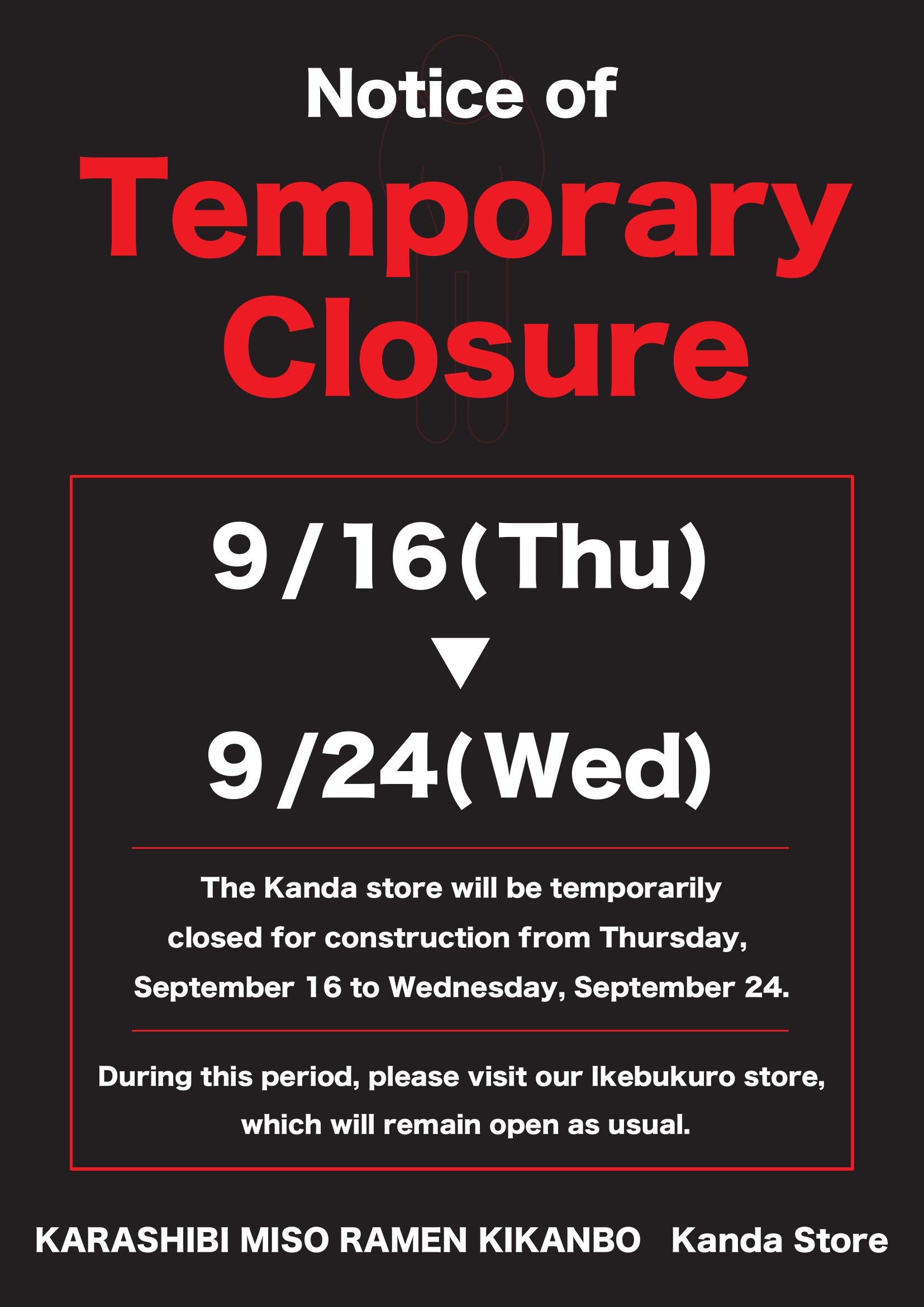 【神田店】改修工事による一時閉店のお知らせ