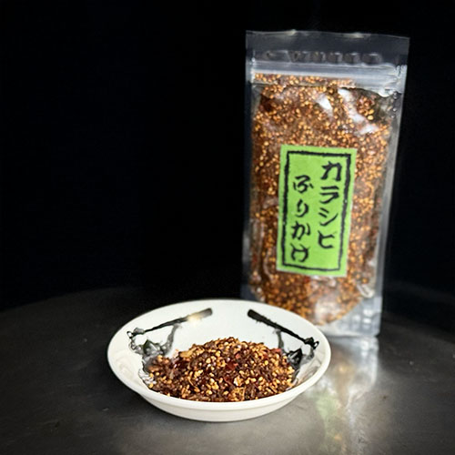 カラシビふりかけ うまい・カラい・シビれる・ご飯のループが巻き起こる! 香ばしく焙煎した胡麻、絶妙な味噌の旨味、唐辛子のカラさ、花椒のシビれ、濃厚な味わいのふりかけです。 内容量 :80g 原材料名:白いりごま(国内製造)・唐辛子・ガーリックチップ・かつお粉・ごま油・米味噌・花椒・薄口醬油・砂糖・塩・あおさ粉・陳皮・麻の実・調味料(アミノ酸等 ) ●本製品に含まれるアレ・・・
