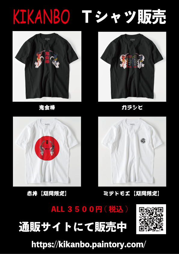 オリジナルTシャツ販売中  ペイントリー 鬼金棒ショップにて    https://kikanbo.paintory.com/  定番Tシャツ2アイテム  期間限定Tシャツ2アイテム